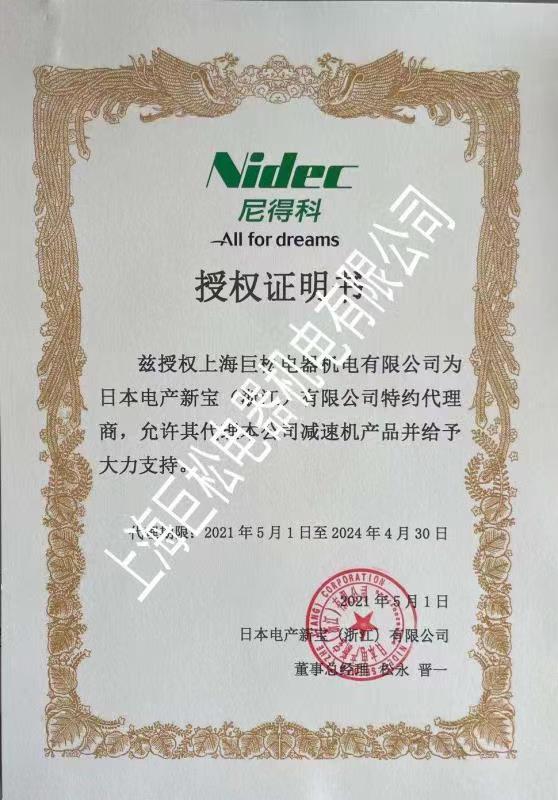 上海巨松電器機電有限公司是尼得科傳動技術(浙江)有限公司(前身日本電產新寶浙江有限公司)戰略合作伙伴。致力開拓智能精密傳動電機減速機市場,是尼得科核心專業代理商。特別專注于水切割、包裝設備、鋰電池新能源設備、數控機床、印刷機械等行業,是高端精密傳動領域佼佼者。
