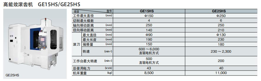 · GE25HS:高速、大功率主軸,為汽車差速器等大直徑齒輪提供高效加工