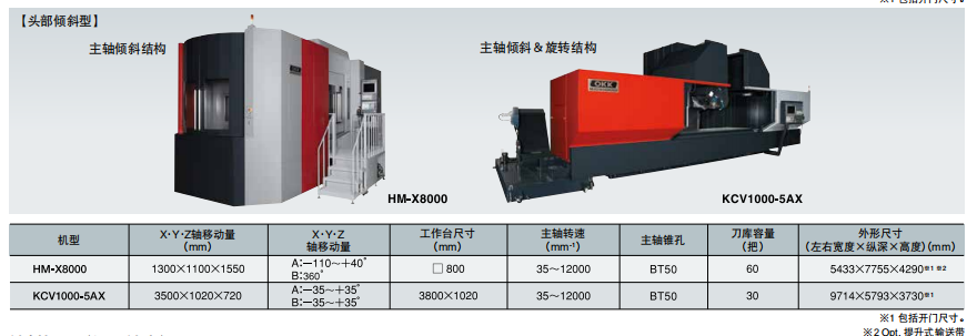 · KCV1000-5AX,該機型可以高速高效地加工大型飛機零部件,該五軸加工單元采用主軸傾斜回轉結構(適合加工大型工件),用長工作臺加工長工件。